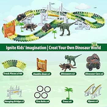 Kids Toys Train Dinosaur Toys: Dinosaur Train Toys Race Track Set 160PCS Boy Toys Dinosaur World Road Race Toddler Dinosaur Toys Cars Christmas ...
